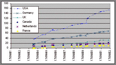 The core of Lancashire’s argument is that the high demand for computer programmers in the U.S. during the 1990s has led to an abundance of economically beneficial opportunities, implying high opportunity costs of joining open source projects in the U.S. Lancashire therefore concludes that traditional economic arguments can explain the geographical distribution of Linux kernel developers. This conclusion, however, is based on data from a single kernel release (2.3.9). As should be clear from the above discussion, Linux Credits files are cumulative records of persons who have been involved in Linux development. The snapshot picture provided by a cumulative record of Linux developers should therefore be complemented with a more dynamical analysis.